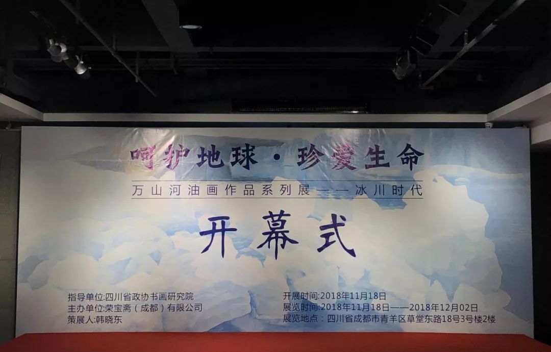 11月18日,由四川政协书画研究院指导,成都荣宝斋主办的著名油画家万山河冰川系列作品展在成都荣宝斋展览大厅隆重开幕。展览以“呵护地球,珍爱生命”为主题,集中展出了油画家万山河冰川系列三十余幅作品。
